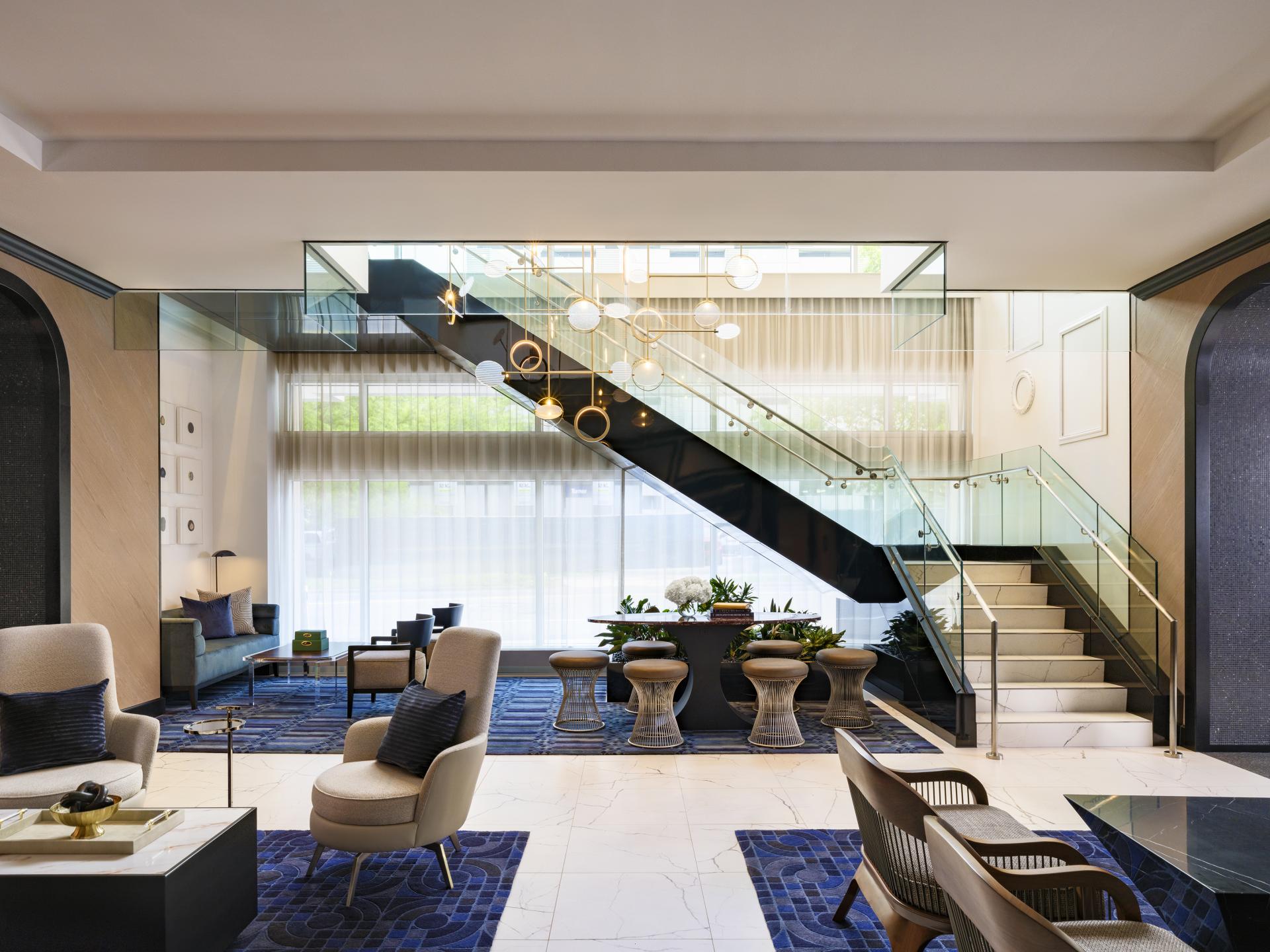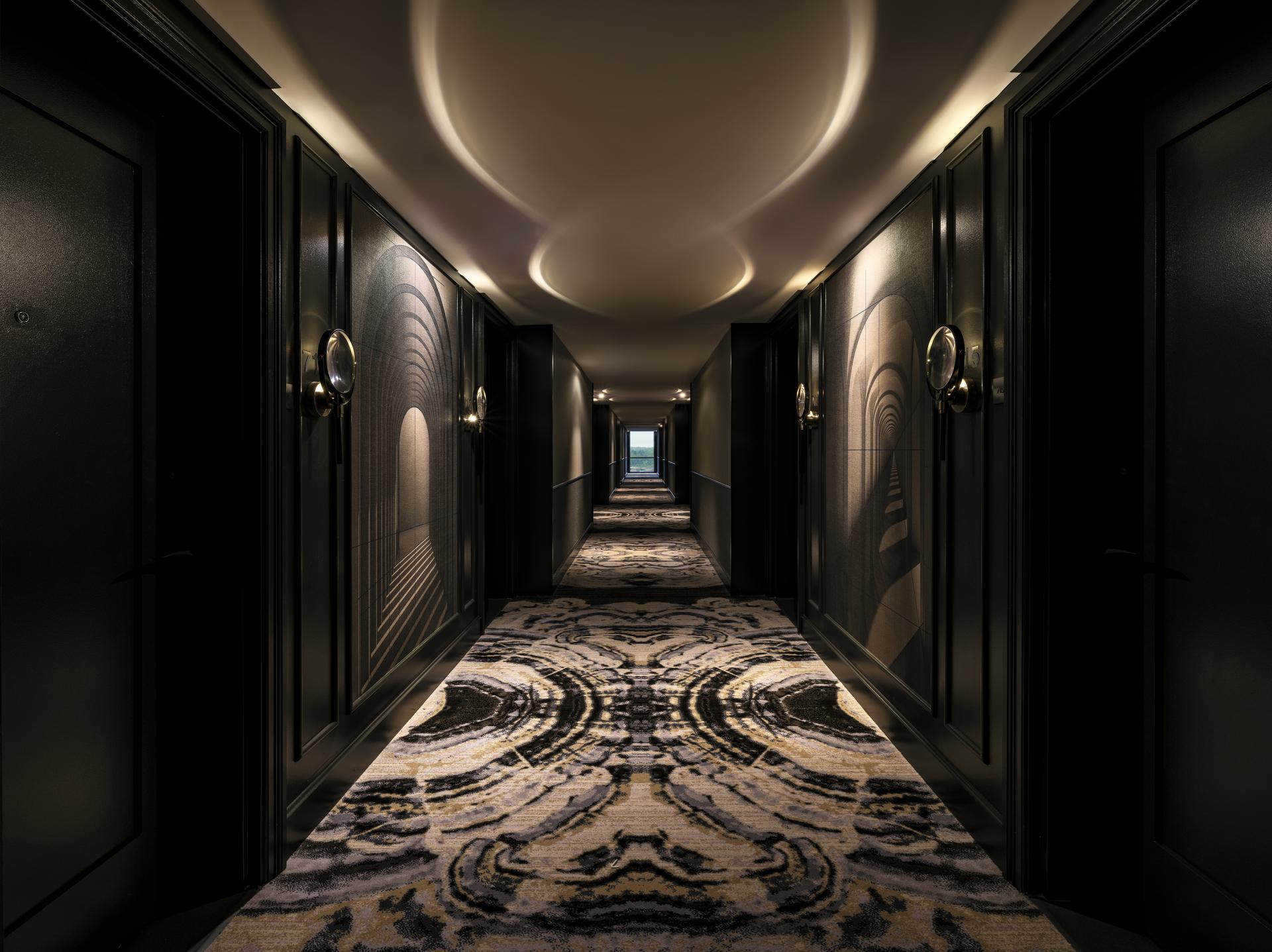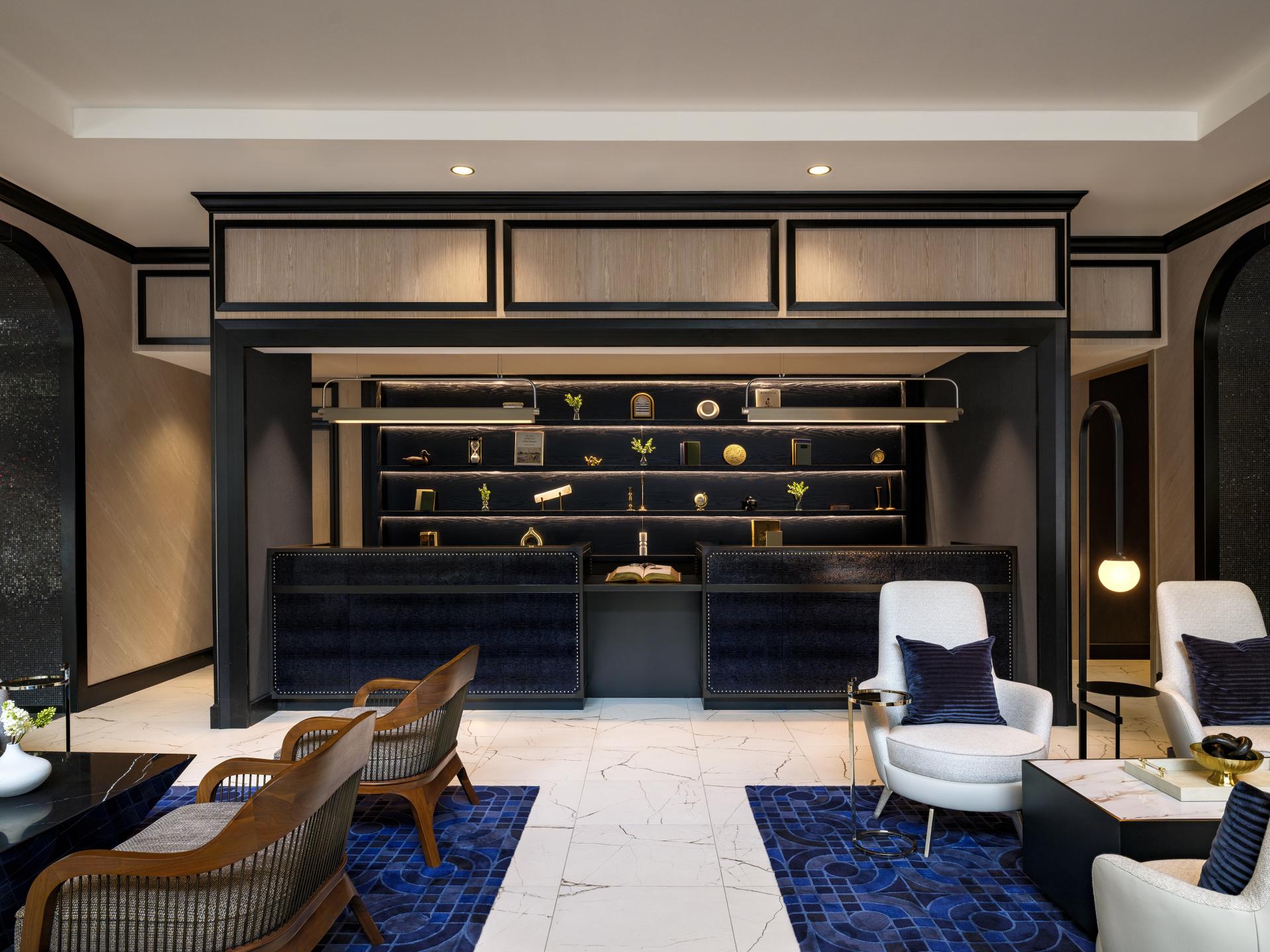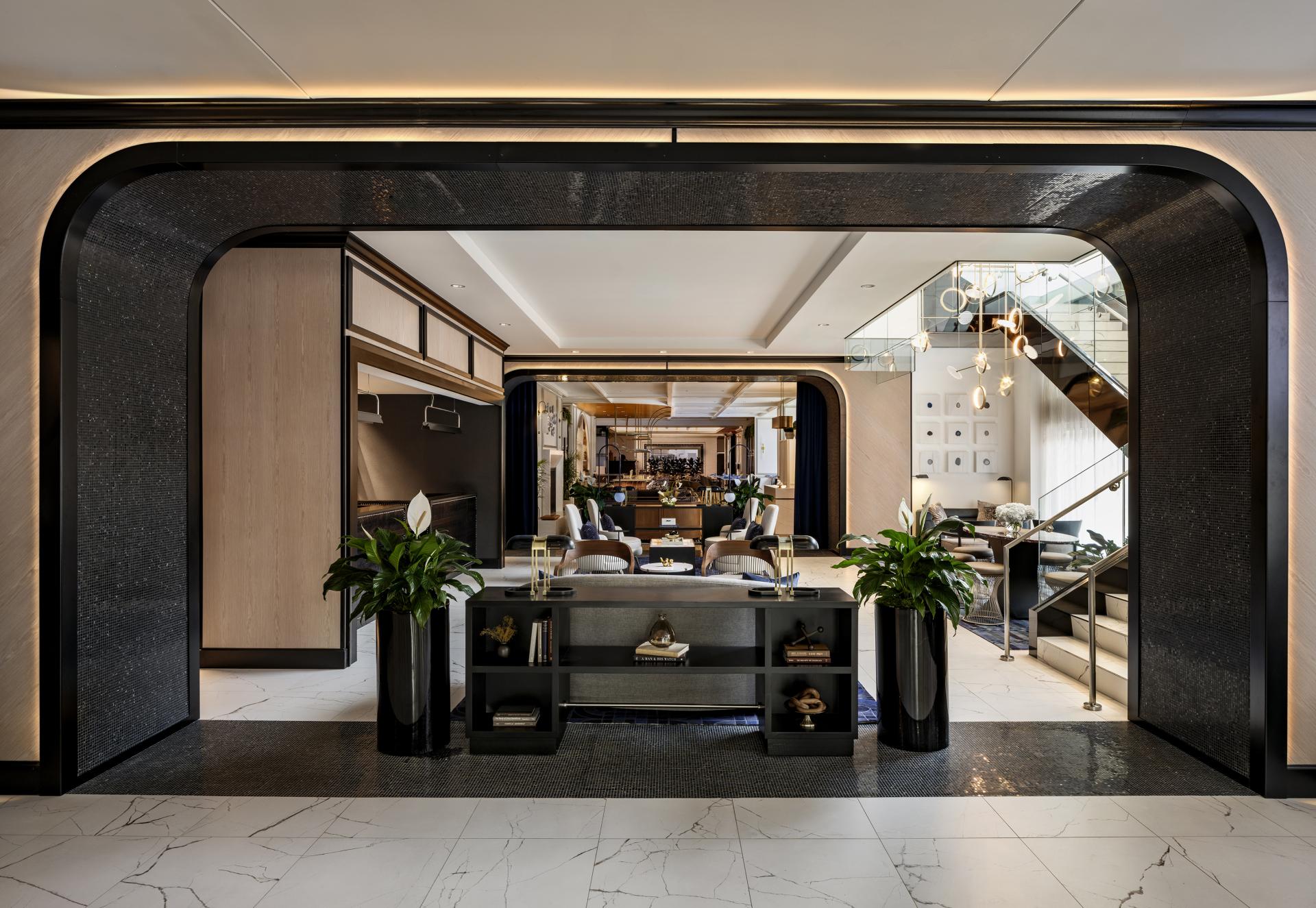 Throughout the hotel, portals frame transitions between spaces, creating rhythm and inviting moments of pause. The art collection adds layers of narrative, from a stairwell of monochromatic vintage frames to a curated geode display that celebrates the joy of learning. Together, these moments form a layered, transportive guest experience – one of exploration, memory, and timeless elegance.