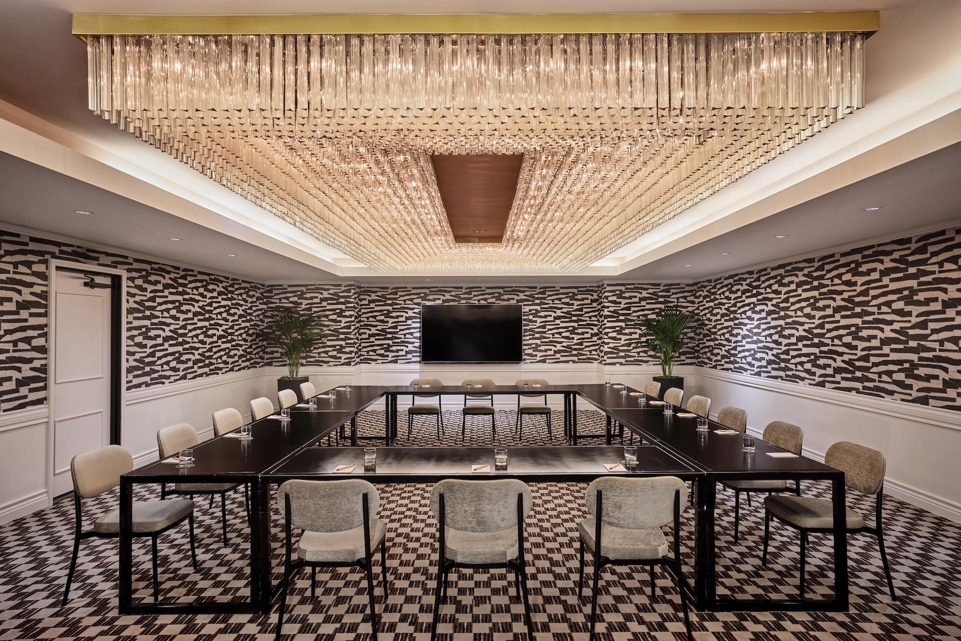 The hotel features a state-of-the-art 24-hour fitness center and over 13,000 square feet of renovated event space accommodating up to 200 guests and spreading across two floors, including 16 meeting rooms, many featuring floor-to-ceiling window views of the surrounding cityscape.