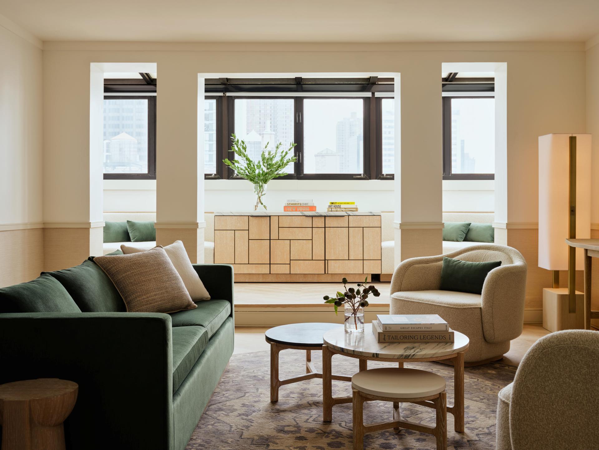 Situated just steps from Grand Central Terminal and surrounded by tree-lined streets, Gilded Age mansions, and classic architecture, the lifestyle hotel brings a renewed sense of timelessness to Park Avenue. The townhouse-inspired design, led by Busta Studio, layers warm woods, soft palettes, and curated gold accents with playful touches of color.